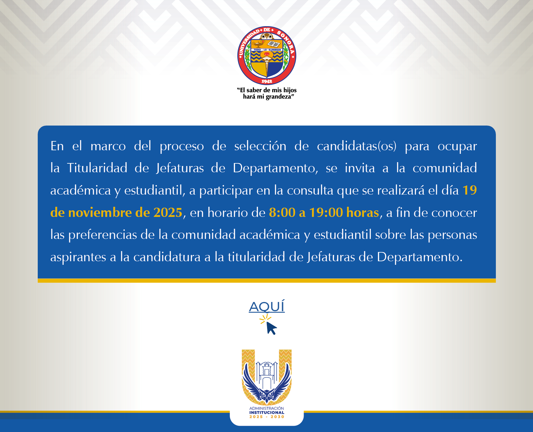 La Universidad de Sonora es una Institución de Educación Superior autónoma y de servicio público fundada en 1942. Es el más valioso patrimonio social del estado de Sonora por la magnitud y calidad de sus recursos humanos y materiales, el número de estudiantes, la calidad de la educación que ofrece, la presencia de sus egresados y por su impacto en la historia y el progreso regional.