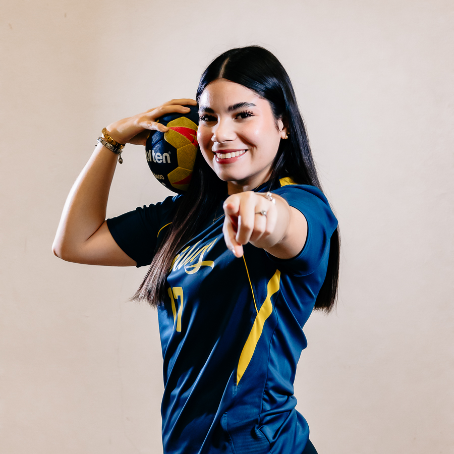 Michelle Alejandra Flores Echeverría, de 21 años, cursa el octavo semestre de Médico Veterinario Zootecnista y practica handball en la categoría universitaria femenil.
