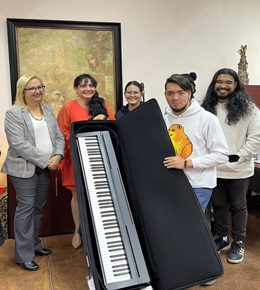 Por su parte, la titular de la Dirección de Apoyo a la Vinculación y Difusión, Diana María Meza Figueroa, comentó que con este equipamiento se fortalecerá el área de servicios y el proyecto realizado permitió la compra de pianos portátiles, guitarras acústicas, electroacústicas y requintos, por mencionar algunos.