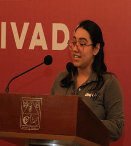 Por su parte, Ana Paula Herrera Loera, estudiante del noveno semestre de la carrera de Ingeniería Civil de la Unison, habló a nombre de todos los becados y, en su agradecimiento, contó a manera de anécdota cuál había sido su vivencia, primero entusiasmada por estudiar y luego, preocupada por dónde realizarse profesionalmente.