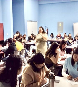 Asimismo, se impartió la conferencia “Resiliencia en el contexto de salud”, por parte de la maestra Natalia Zárate, invitada de la Universidad Veracruzana, para impartir el tema a un grupo de 56 personas.