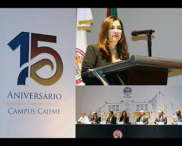 Además, destacó que, a lo largo de 15 años, el campus Cajeme ha cumplido con creces su compromiso de formar profesionistas éticos, preparados y con valores, quienes hoy son reconocidos por su desempeño y contribución a la sociedad, y que sus egresados llevan en alto el nombre de la Universidad de Sonora, gracias al trabajo conjunto con un cuerpo docente comprometido con la excelencia académica.
